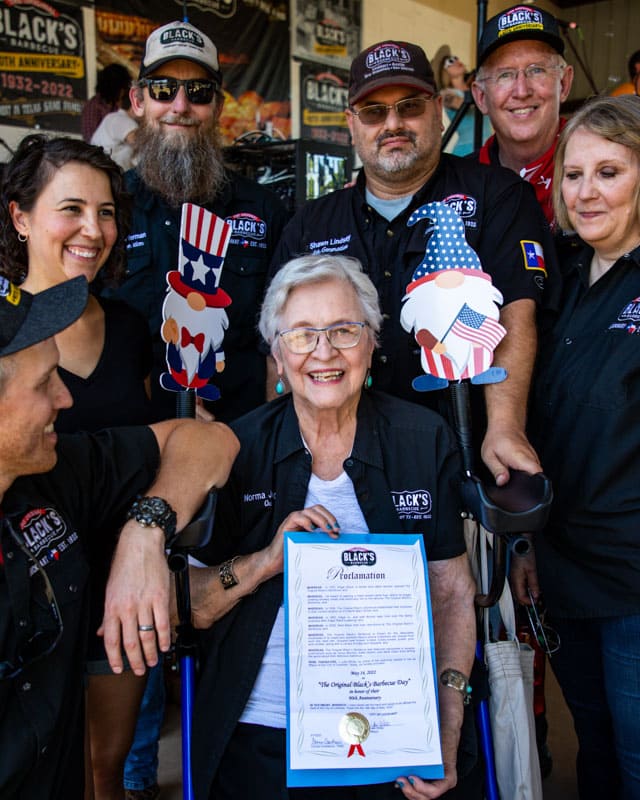 Edgar Black Jr. was born in 1925 in Delhi, Texas. At six years old he made the move with his family to Lockhart, Texas where his dad opened up a meat market and barbecue store. Edgar Black Jr. went on to graduate as a distinguished student from Texas A&M in 1947 after fighting in WWII. Two Years later, Edgar married Norma Jean and they have now been married for over 60 years. Together, Norma and Edgar have been providing the best service and recipes to generations of customers.