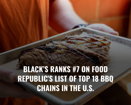 Black's Barbecue, one of Texas' oldest and most beloved BBQ restaurants, is proud to announce that it was ranked #7 on Food Republic's list of the Top 18 Most Popular BBQ Chains in the United States. The ranking acknowledges Black’s long-standing legacy of serving up authentic true Texas barbecue and highlights the restaurant’s reputation for quality and consistency.